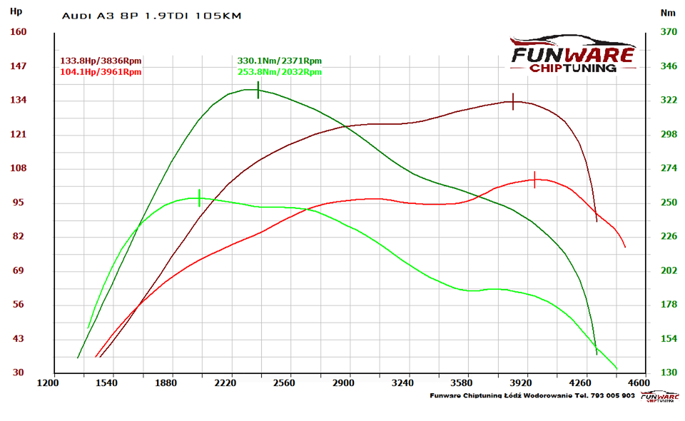 Audi A3 8P 1.9 105 KM Chip Tuning Stage 1