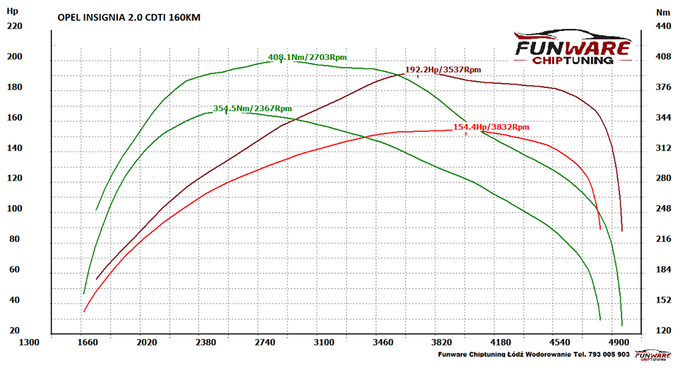 Końcowy efekt strojenia to: 192KM(+38KM) 408Nm (+53Nm)