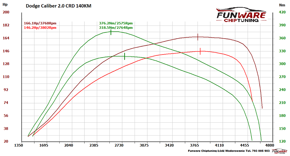 Dodge Caliber 2.0 140KM Chip Tuning Stage 1