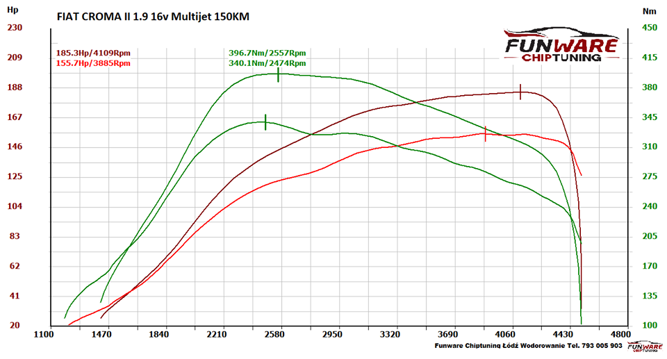 Końcowy efekt strojenia to: 185KM(+29KM) 397Nm (+47Nm)