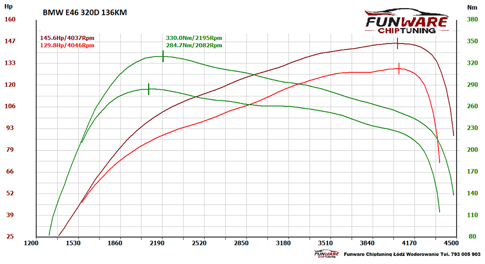 Końcowy efekt strojenia to: 146KM(+16KM) 330Nm (+45Nm)