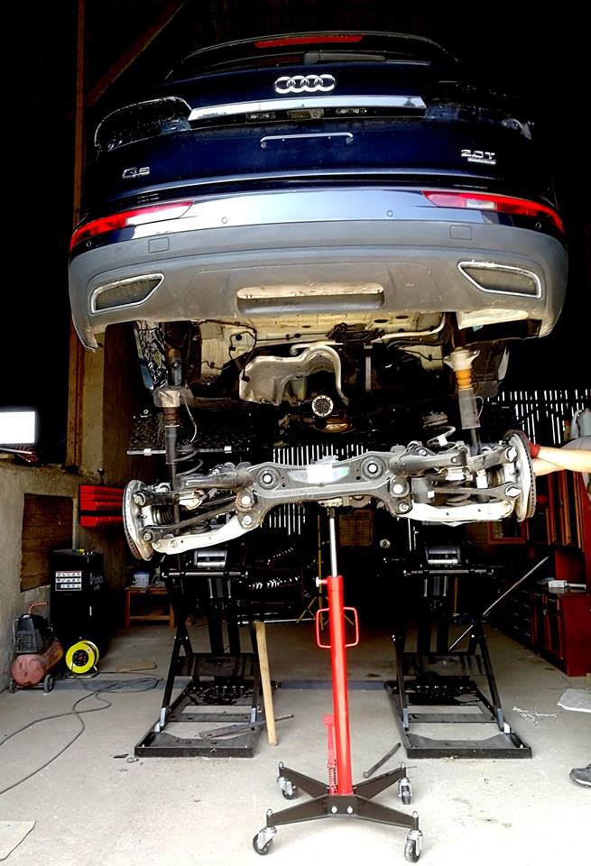 Dziś walczymy z Audi Q5 80A 2.0 TFSI 252KM 4x4 najnowszy model z 2018r. Auto pochodzi z USA należy je więc przekodować na wersję Europejską dodatkowo wózek zawieszenia był uszkodzony. Jak tylko wózek zawieszenia tylnego będzie wymieniony bierzemy się za chiptuning nowego silnika ze stajni VAG.