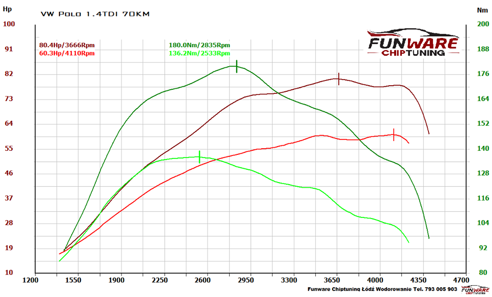 Co z egzemplarzem który pojawił się u nas? Diagnostycznie nie było się do czego doczepić, jednak brakowało mu 10KM do tego co deklarował producent. Przystąpiliśmy do chiptuningu co dało dość dobry efekt do zyskaliśmy 33% więcej mocy (20KM) i 25% dodatkowego momentu. W trakcie strojenia przygotowaliśmy również mocniejszą wersje lecz ostatecznie zostaliśmy przy tym ze względu na nieduży zysk a konsekwencją byłoby wyższe spalanie zostaliśmy przy 80KM. Na obecnym programie spalanie może nie spadnie(bo trudno zejść poniżej 4,5l) ale na pewno nie wzrośnie. A przyspieszenie? Jest dużo lepsze, aż 5 sec zysku elastyczności na 3 biegu