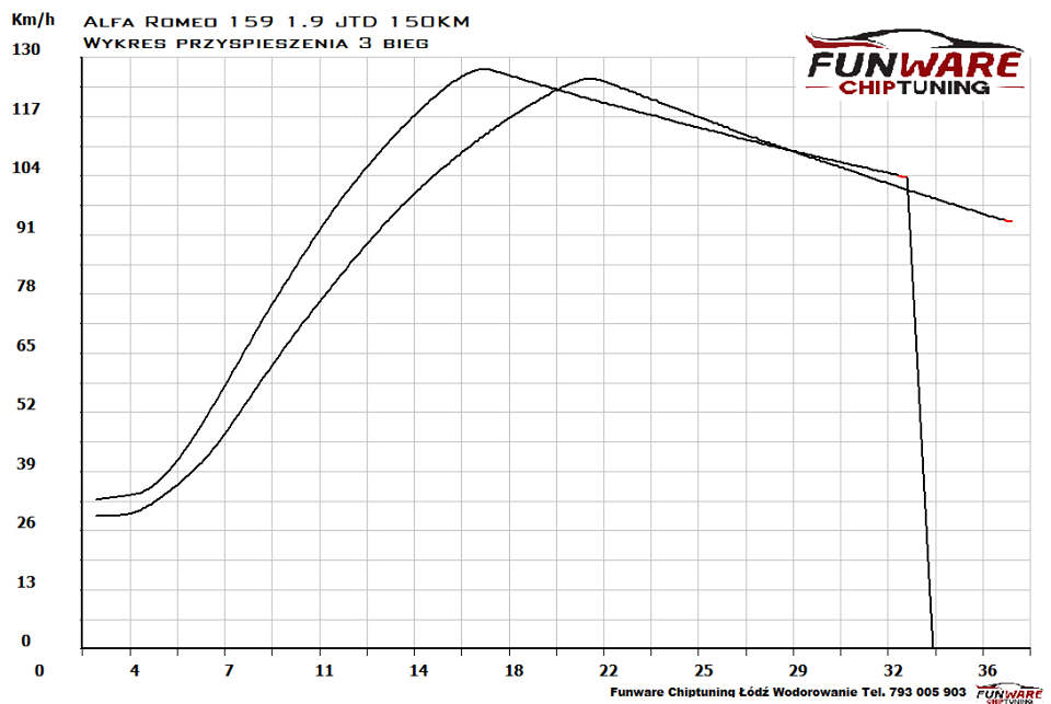 Przy okazji robienia klap wykonaliśmy również chip tuning w Alfie Romeo 159 1.9 JTDM 150KM. Auto trzymało dobrze serię, więc ze strojeniem nie było problemu. Bezdymne 180KM i 390Nm to dobry wynik w tym silniku, żaden z podzespołów nie powinien być przeciążony tą modyfikacją.