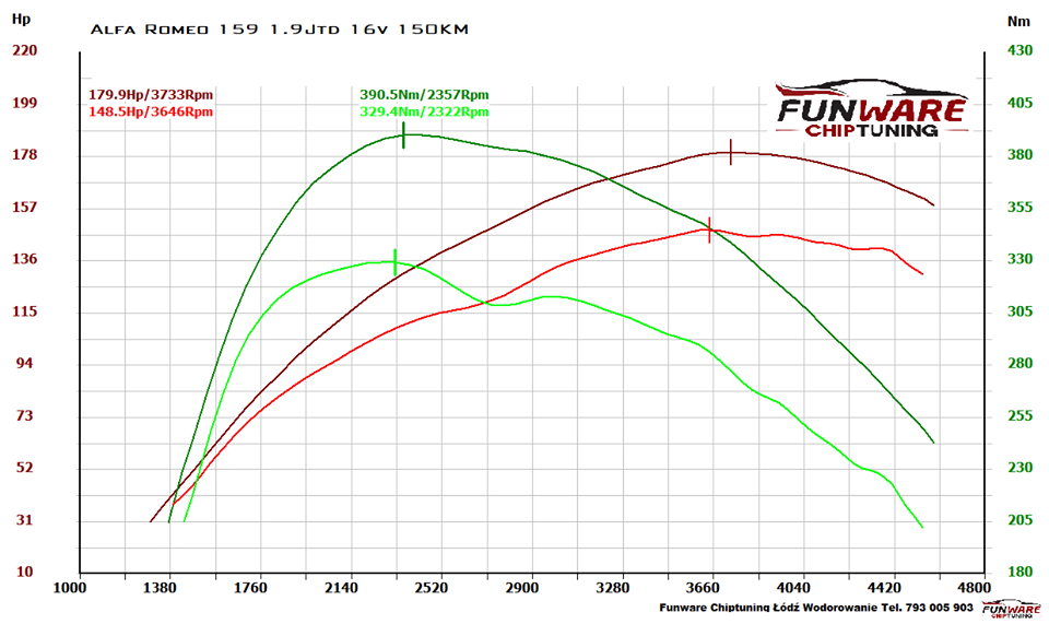 Alfa Romeo 159 1.9 JTD 150KM Chip tuning Stage 1